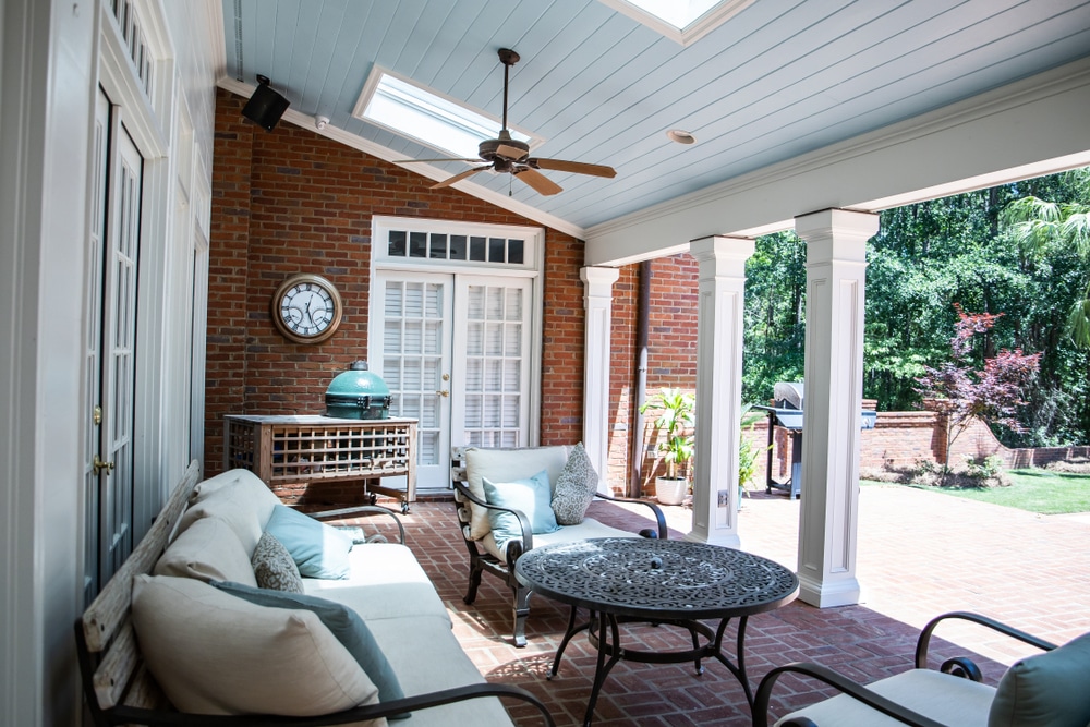 En comparaison avec les porches avant, les porches arrière ont tendance à être plus grands et plus fonctionnels. Pendant la phase de conception, il est important de considérer comment votre véranda arrière sera reliée à la maison principale. Des éléments tels qu’un vestiaire, un coin cuisine ou un abri de jardin sont d’excellents ajouts pour rendre votre véranda arrière plus fonctionnelle.