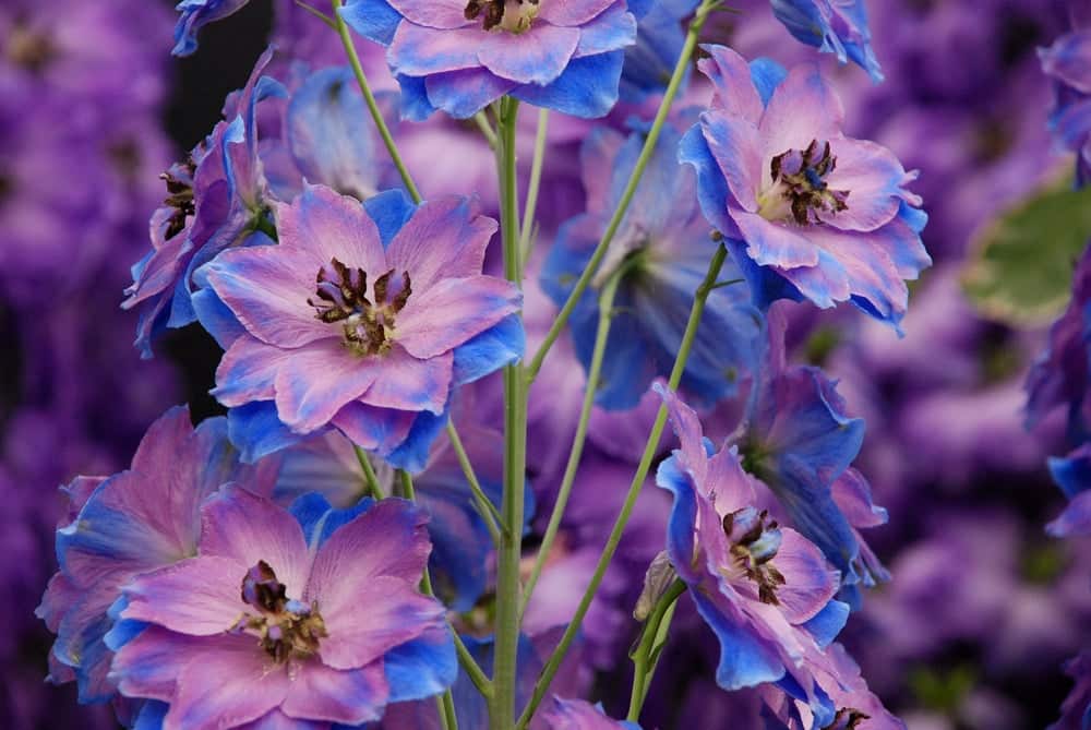 Delphinium est un genre de fleurs qui compte environ 300 espèces différentes de plantes à fleurs, toutes à couper le souffle. Bien que de nombreux delphiniums soient violets, il en existe un certain nombre qui ont des accents bleus ou des corps entièrement bleus. Certaines sont « true blue » en termes de colorations, ce qui signifie qu’elles sont TOUTES bleues.