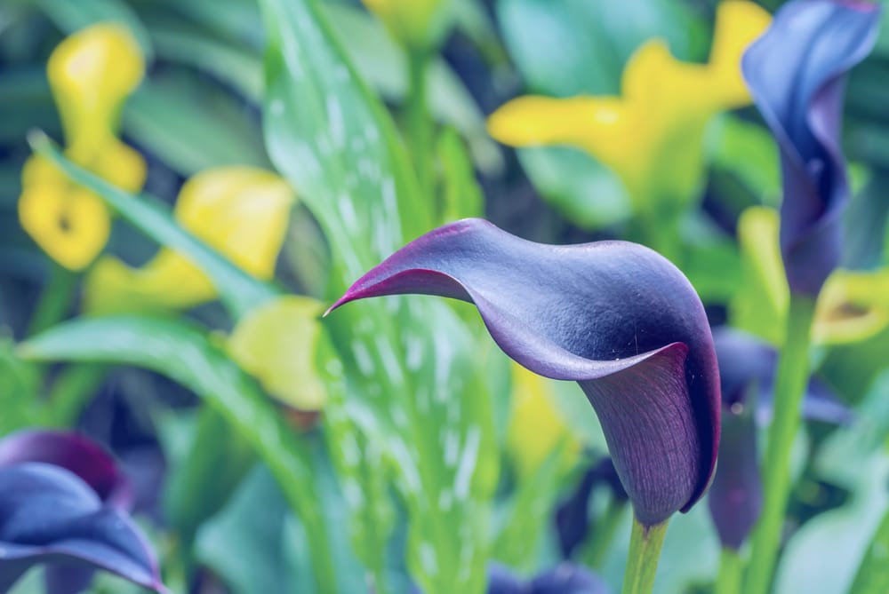 Si vous voulez un aspect plus spectaculaire pour votre jardin, vous pouvez choisir un bleu plus foncé. Ce carré de lis calla, par exemple, a des teintes violettes et bleues. C’est aussi probablement la fleur la plus sombre de cette liste. Donc, c’est chouette, aussi.