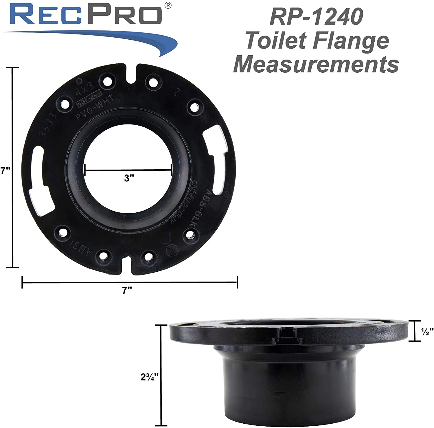 L’unité complète de la bride de toilette 4×3 mesure 2 ¼ pouces de haut. Cette mesure combine le tuyau de 1 ¾ pouce et l’épaisseur de la bride de ⅜ pouces. La conception lui permet de s’asseoir à l’intérieur du coude du placard, et de s’asseoir au niveau du sol fini de la salle de bain.