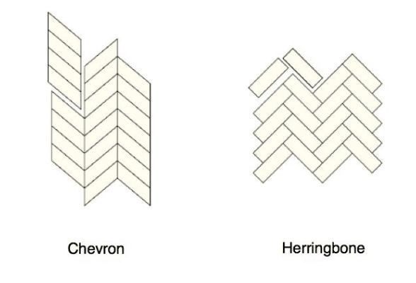 - Le motif à chevrons vous permettra de réaliser un design à l’aspect entrelacé et complexe, avec une seule longueur et une seule taille de carreaux (à l’exception, bien sûr, des carreaux sur les côtés et les coins). Les terrasses en briques, par exemple, présentent généralement ce type d’aspect, mais il peut être utilisé partout, des dosserets de cuisine aux sols de salle de bains. C’est également très populaire en ce moment.