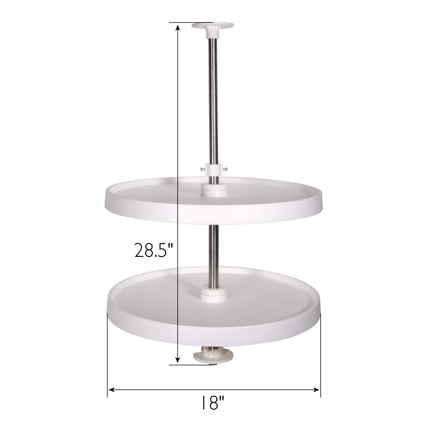 Les plateaux tournants sont les plus polyvalents parmi les options de plateaux tournants. Les plateaux circulaires de cette table tournante n’ont pas de découpe pour les portes d’armoire et ne se fixent pas aux portes d’armoire. Les plateaux ronds s’adaptent à la plupart des armoires standard et d’angle, en position haute ou basse.