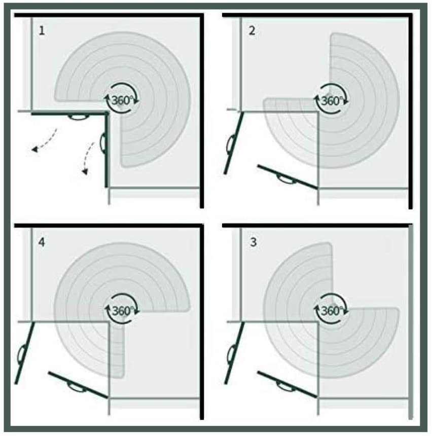 Étant donné que les portes sont fixées au plateau tournant, elles doivent être conçues comme des portes rentrantes. Cela permettra aux portes de pivoter dans l’ouverture du meuble. N’oubliez pas que le plus grand susan tournant a un diamètre de 28 pouces, ce qui ne permet pas toujours d’optimiser l’utilisation de l’espace.