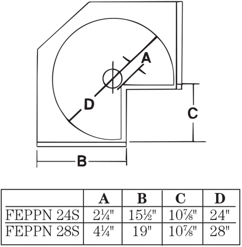 Pour s’assurer que le plateau tournant demi-rond s’adapte, l’ouverture du meuble ne doit pas être inférieure à la largeur du plateau tournant. De plus, l’ouverture du meuble ne doit pas être plus courte que les dimensions du susan, de l’avant à l’arrière.
