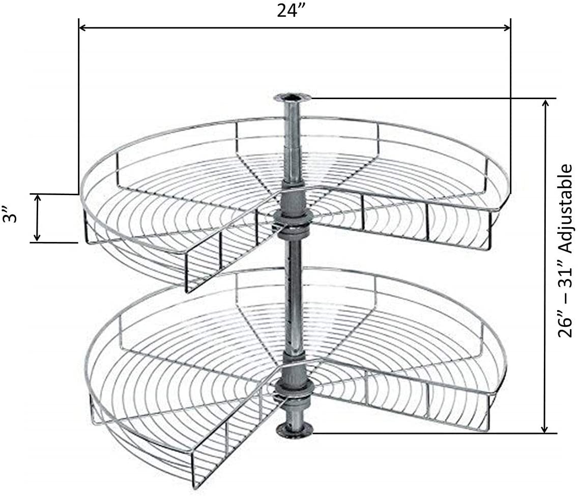 Les glissières à roulement à billes permettent aux étagères de sortir en douceur lorsque la porte est ouverte. Les tablettes demi-rondes s’adaptent à des ouvertures d’armoire de 12 à 19,5 pouces.