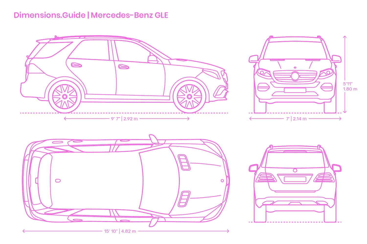 - VUS, camions et fourgonnettes (6-7′ de large, 16-19′ de long).