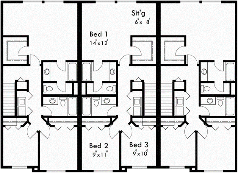 Ainsi, vous pouvez avoir un bâtiment de 3 000 pieds carrés avec trois maisons de 20 pieds de large. Dans ce genre d’installation, on trouve généralement des unités à deux étages.