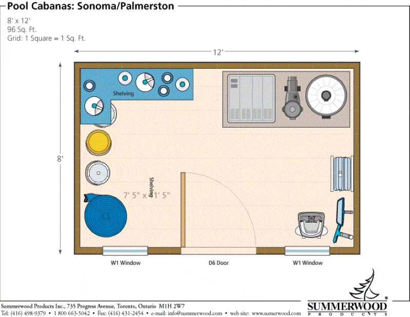 Si vous avez une piscine, un cabanon est un excellent moyen de stocker l’équipement et de servir de vestiaire. Cette configuration permet de ranger l’équipement sur les côtés et dans les coins, tout en laissant le centre ouvert pour que les gens puissent se changer. Vous pouvez également ranger les chaises de piscine, etc., dans cet espace en cas de mauvais temps.